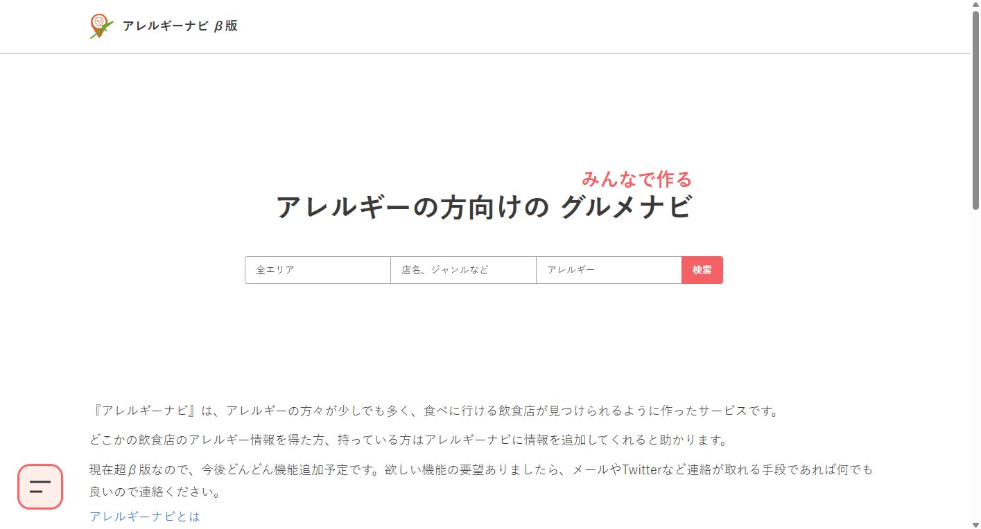 食物アレルギーを持つ方向けのグルメナビ、「アレルギーナビ」を作りました