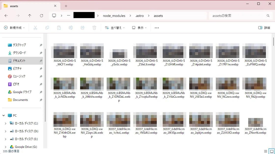 なぜかビルドするとdist配下に収まりつつ、node_modules/.astro/assets/配下にも全部入ります。WTF。